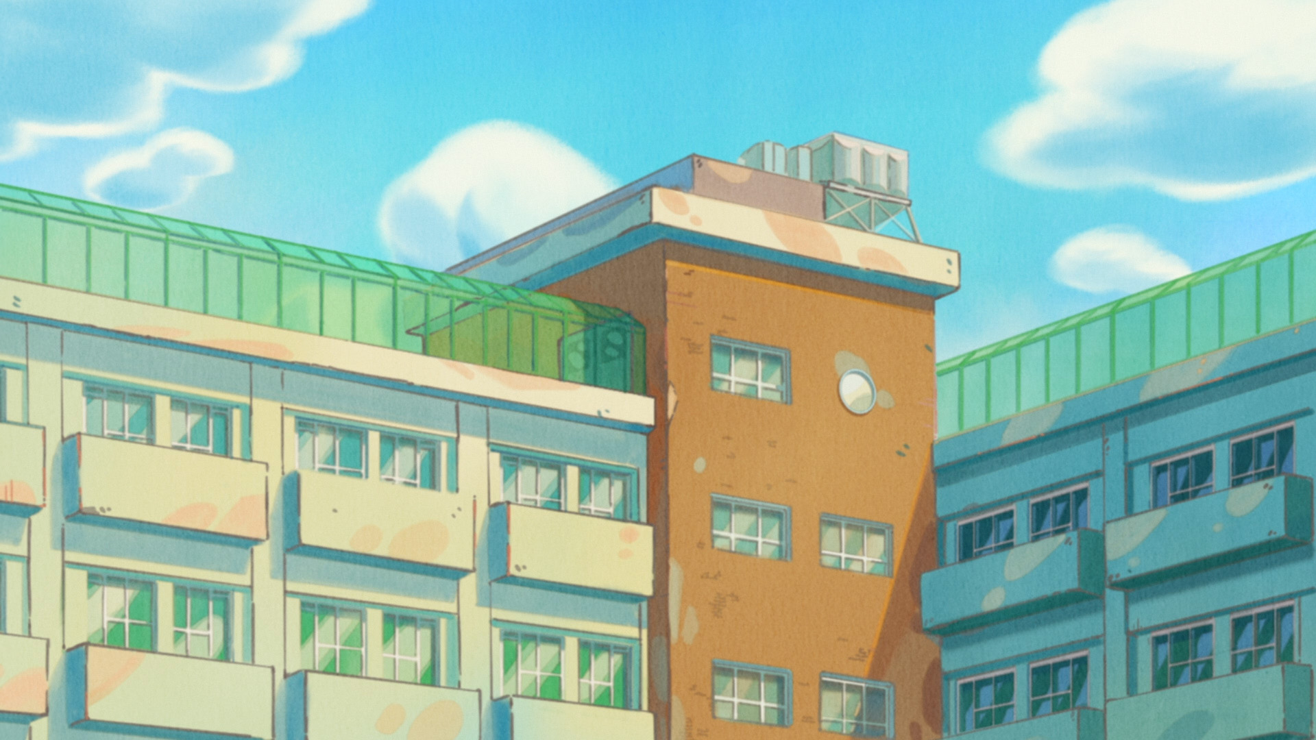 校舎外壁の時計の針が削除(TV 版は 15:35 頃を差していた) |