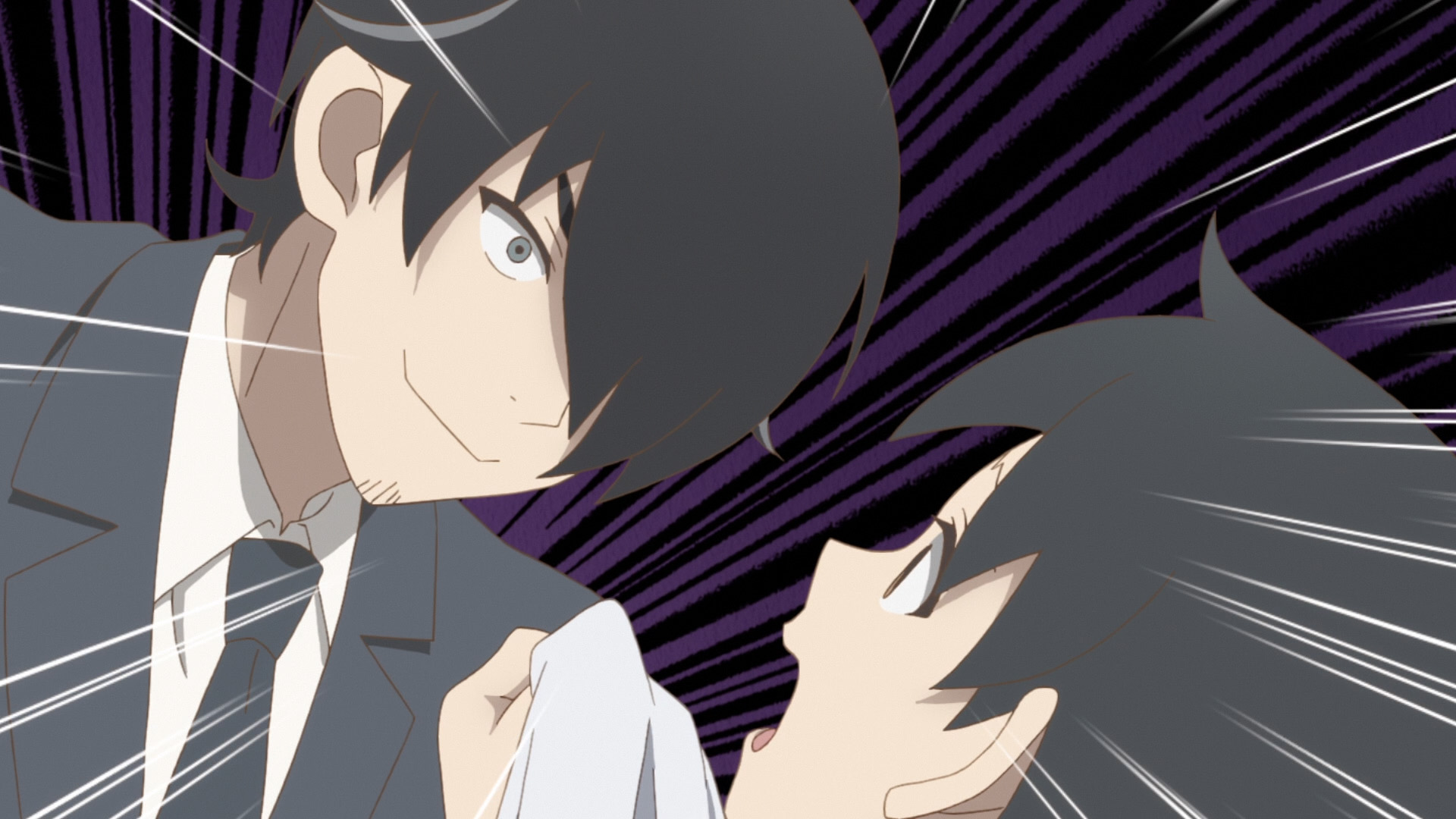 志治の名前紹介テロップが小さくなり、表示方法も変更(絵コンテには IN の記載のみだが、実際は OUT も変更) |