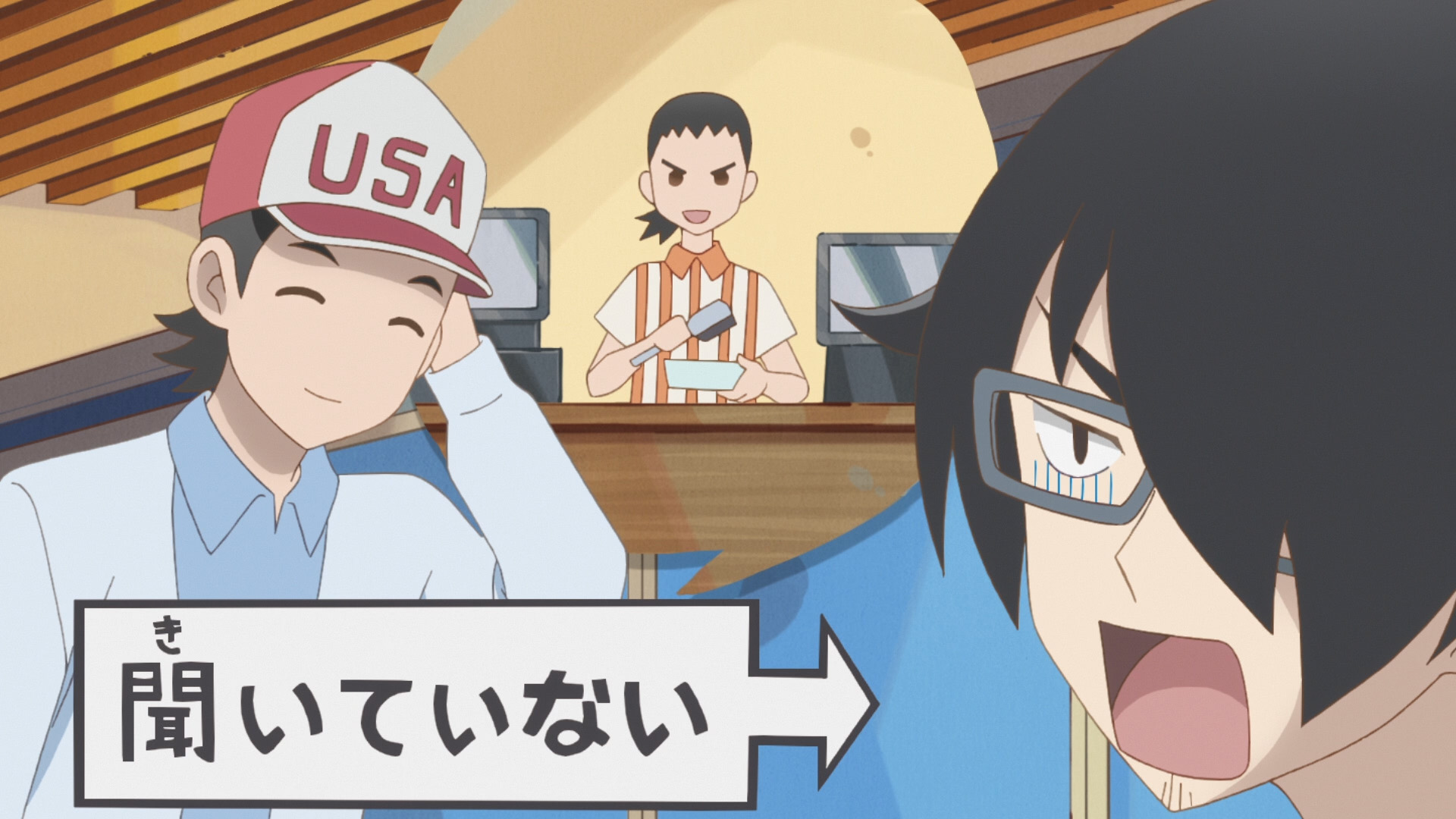 亜美登場時のカメラワークをパンアップ→トラックアップに変更、名前紹介テロップが小さくなり、表示方法も変更(絵コンテには指示がないが、他キャラと同じ変更を実施) |