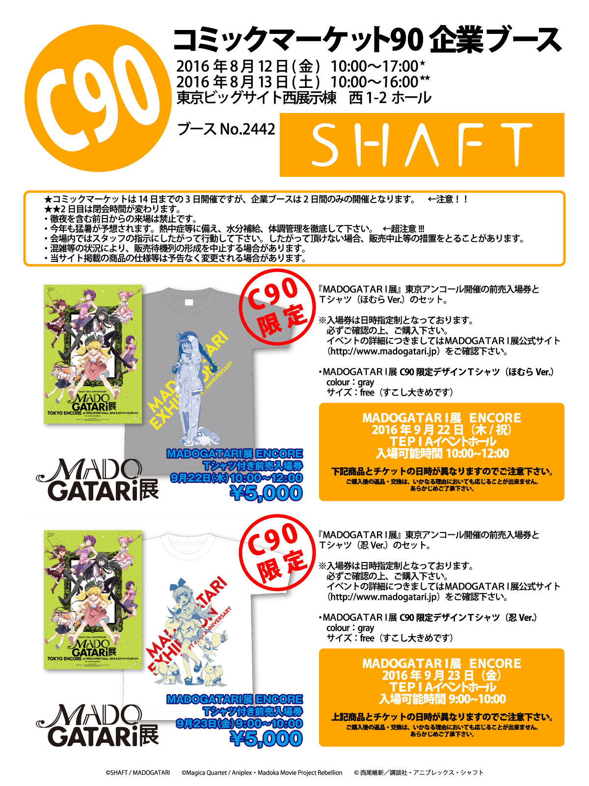 京まふ2016 の販売商品はシャフト公式サイトのリニューアルにより現在は閲覧することができず、 Internet Archive のサイトにも保存されていないので、当時掲載されていた画像を転載のうえ掲載します。 ↩ 戻る