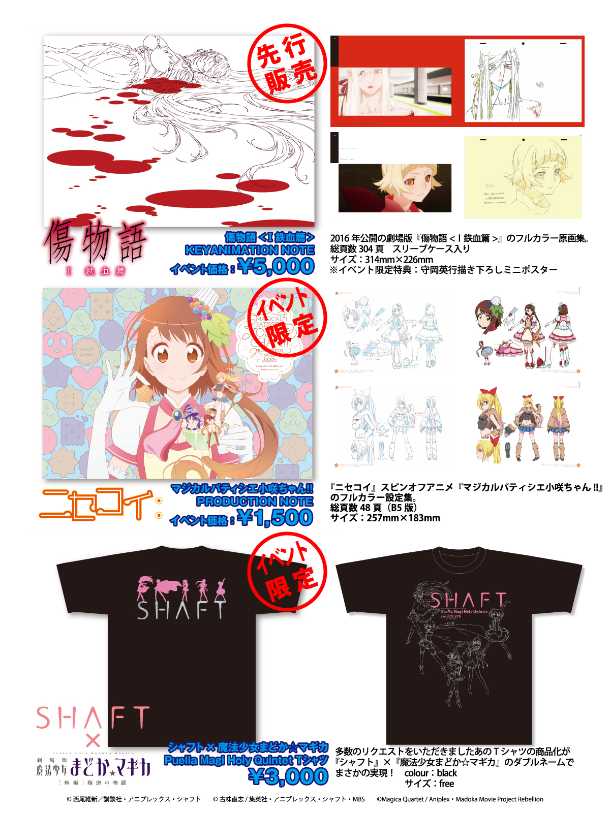 イベント会場でシャフトから販売されたグッズ情報をまとめました。