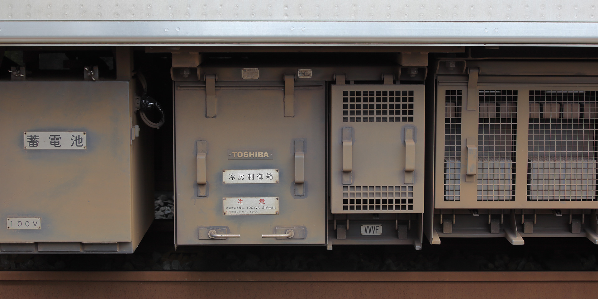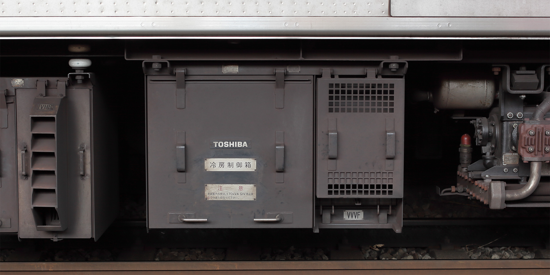 1988年に登場した1000系では冷房装置がインバーター制御になりました。従来はサーモスタットにより冷房能力を段階的に切り替える方式でしたが、本形式からは各車の床下にマイコン制御による無段階切替を行う制御箱(東芝製)が設けられ、無段階制御を行っています。
