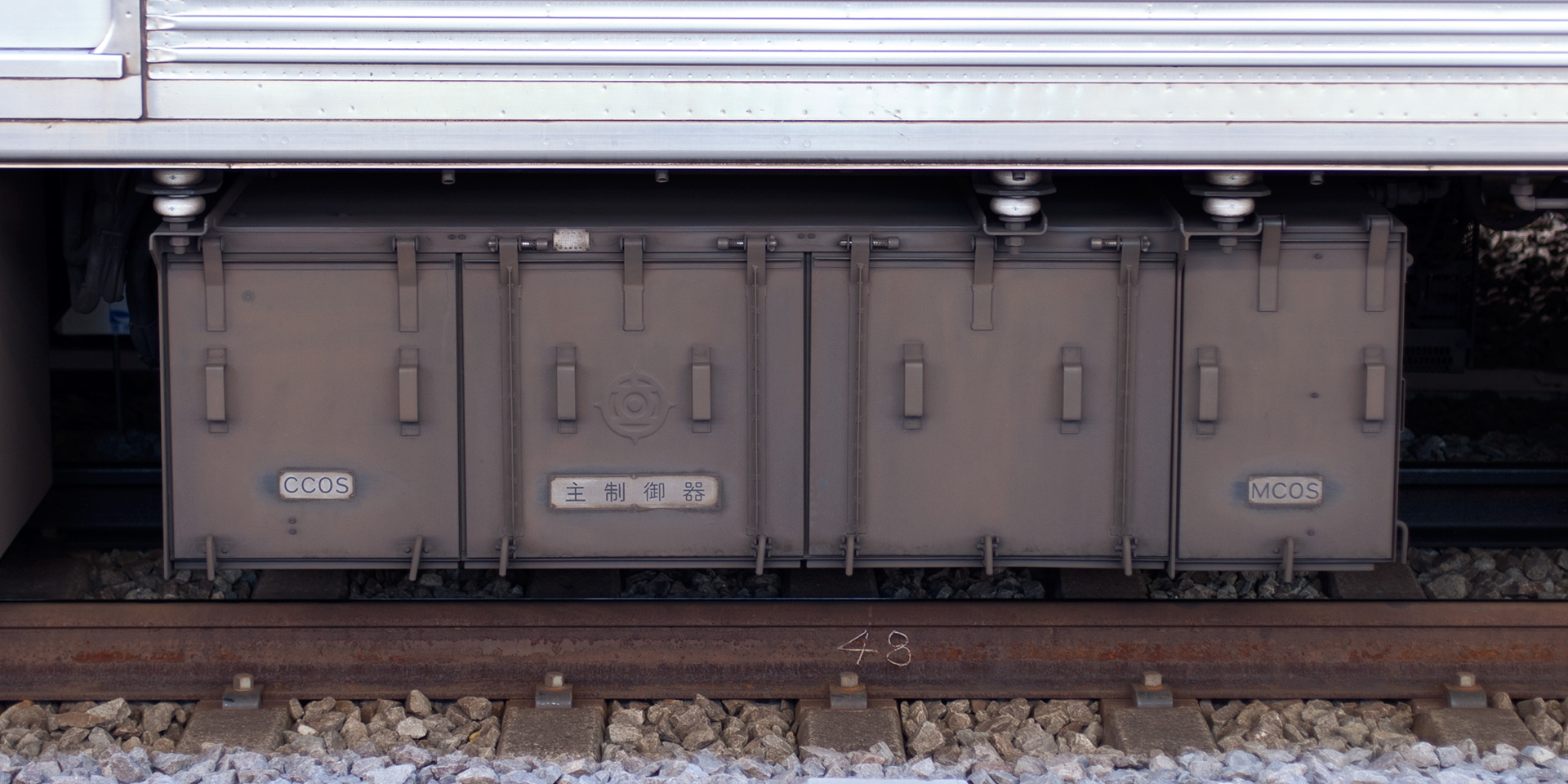主制御器は当初3枚蓋でしたが、後に改修を受けて4枚蓋となり、5次車以降の MMC-HTR-20C 型に酷似した形態となりました。断流器箱は分巻回路用(FS1〜FS2)と直巻回路用(L1〜L3)、直並列切り替え用(S, P, G)の各スイッチを装備していましたが、これも改修工事で限流遮断器(L3)が高速度遮断器(HSCB)に置き換えられました[文献2]。その際、高速度遮断器は単体の箱が向かって右側に増設された一方で、元の限流遮断器の跡地はそのまま空きスペースとされ、改造然とした形態になったのが特徴です。