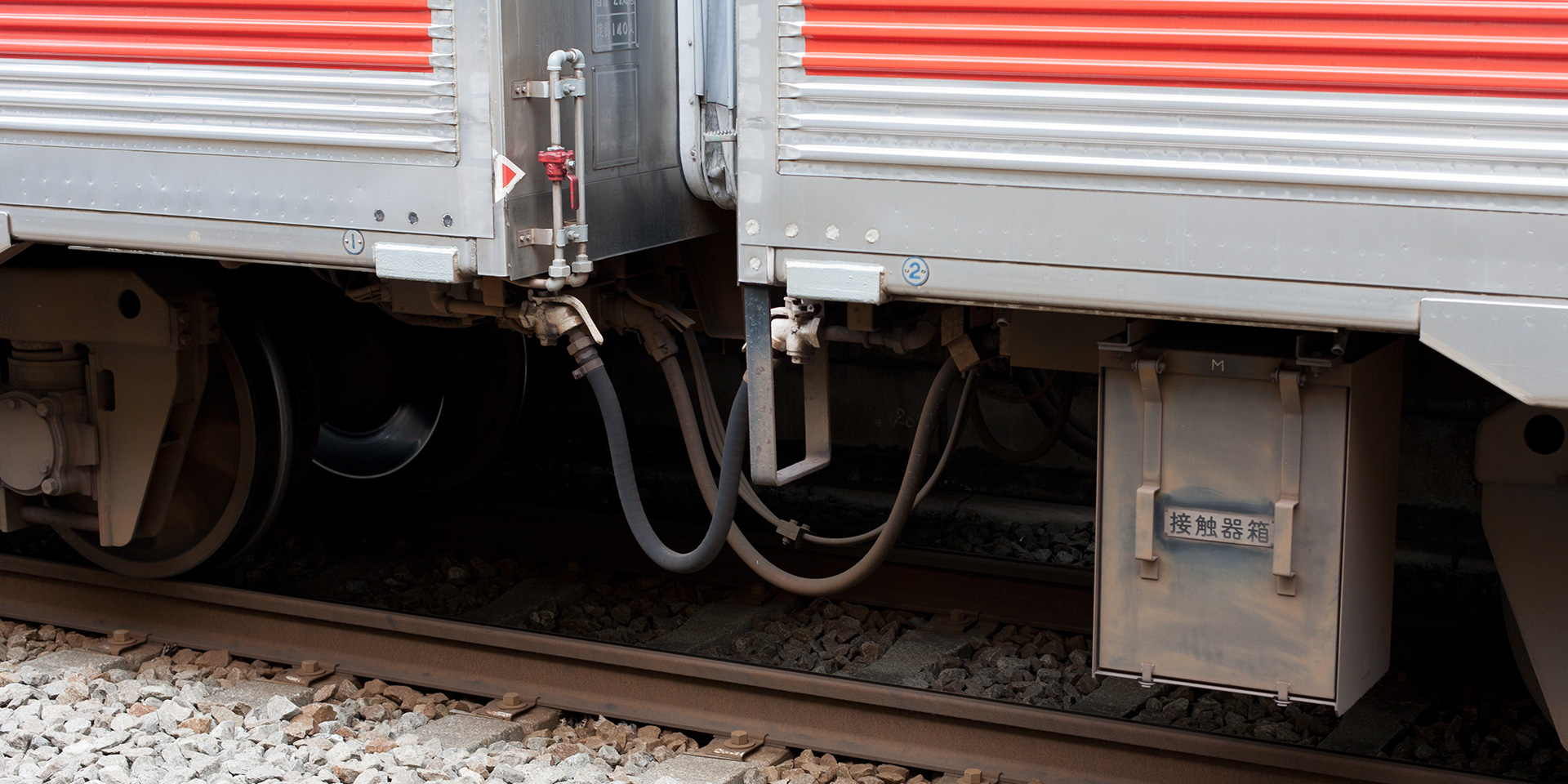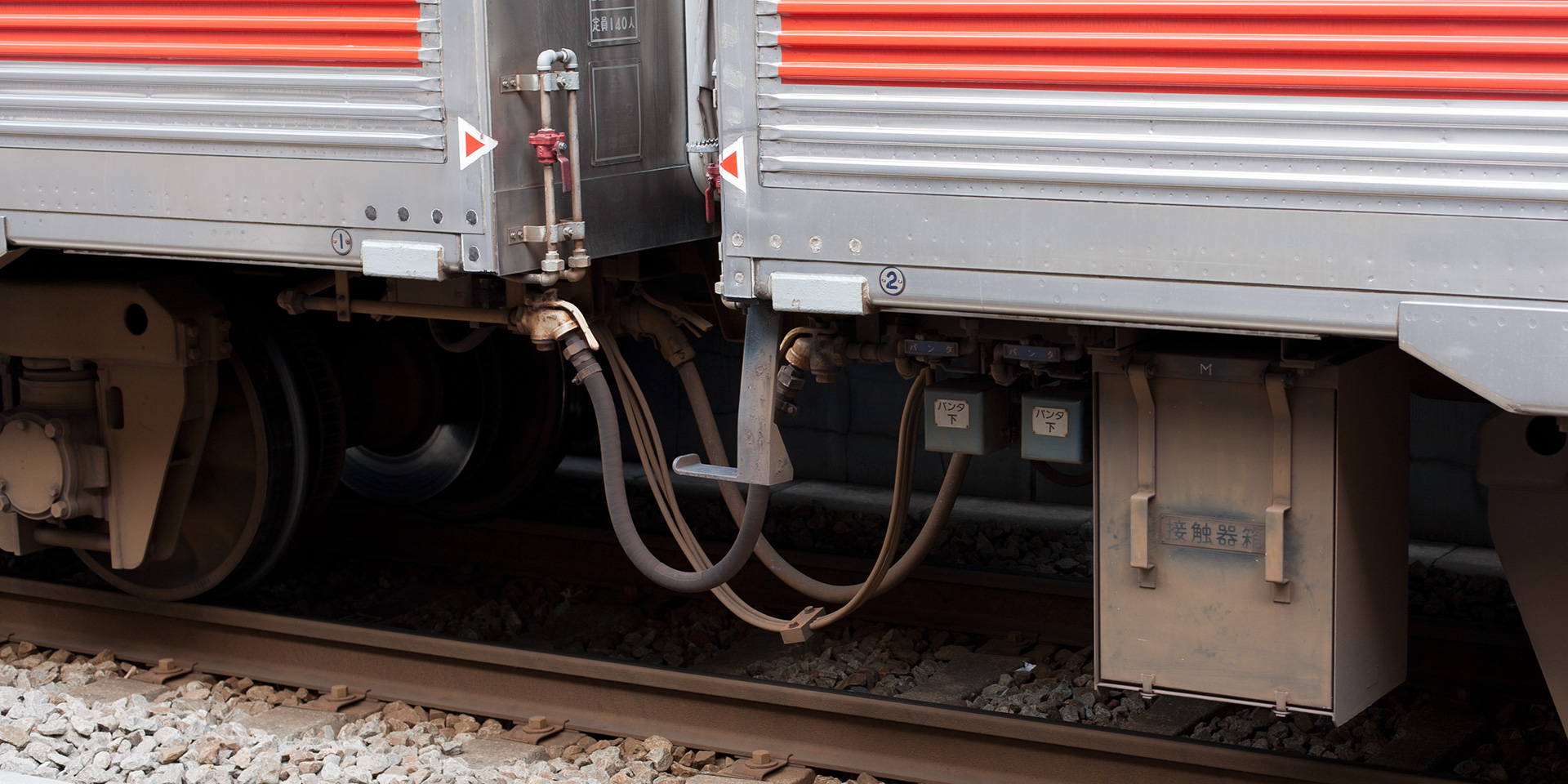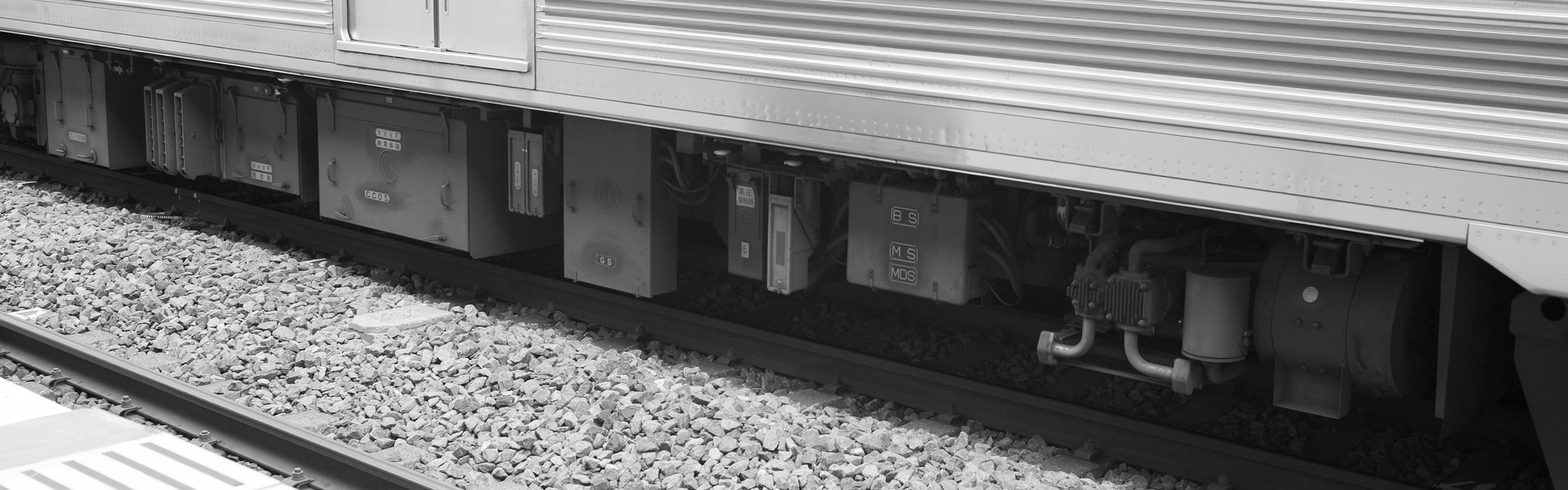 主な機器は下り方から順に、SIV起動装置、接地開閉器、SIVフィルタトランス、元空気だめ、空気圧縮機(HS-20型)です。