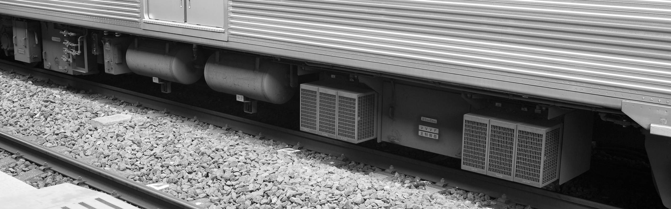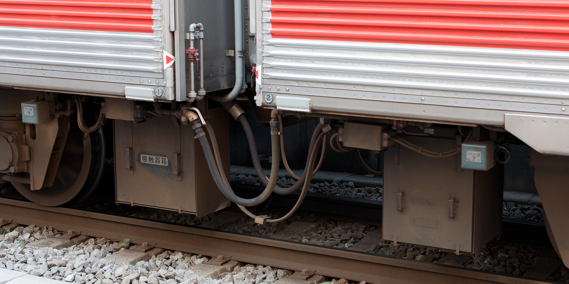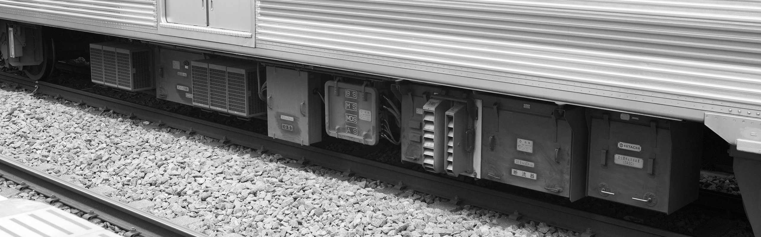 主な機器は下り方から順に、整流装置、ブレーキ制御装置、元空気だめ、情報伝送装置です。