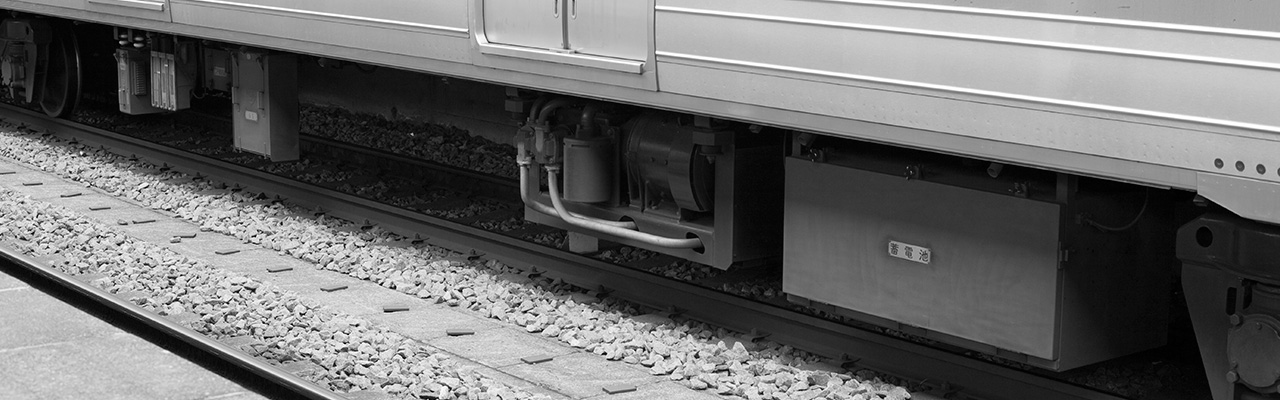 蓄電池が海側搭載のCP撤去車で、主な機器は下り方から順に、接地開閉器、100V蓄電池です。